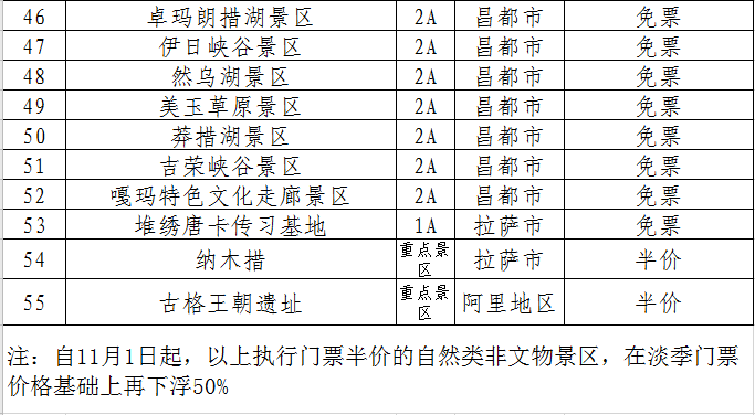 国有3A级以下和非国有A级景区在淡季价格基础上减半。