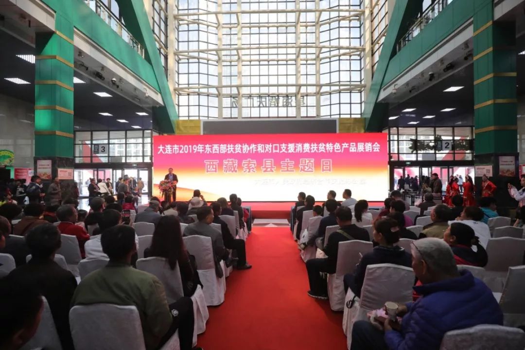10月19日,作为大连市2019年东西部扶贫协作和对口支援地区消费扶贫特色产品展销会系列活动之一的西藏那曲市索县主题日活动在会展中心一期大厅启幕,此次展销会期间,大连对口帮扶的六盘水市、新疆八师石河子市、西藏那曲索县、湖北兴山县、辽宁朝阳市的142家企业(合作社、慈善机构)参展,为大连市民带来了上百种当地农特产品。