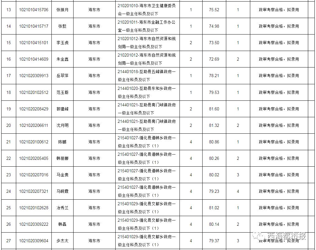 海东市公安机关2019年面向社会公开考录人民警察政审考察合格人员名单