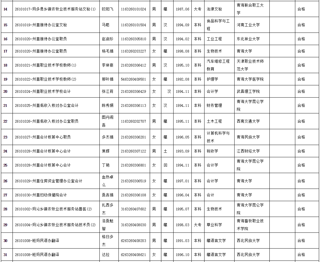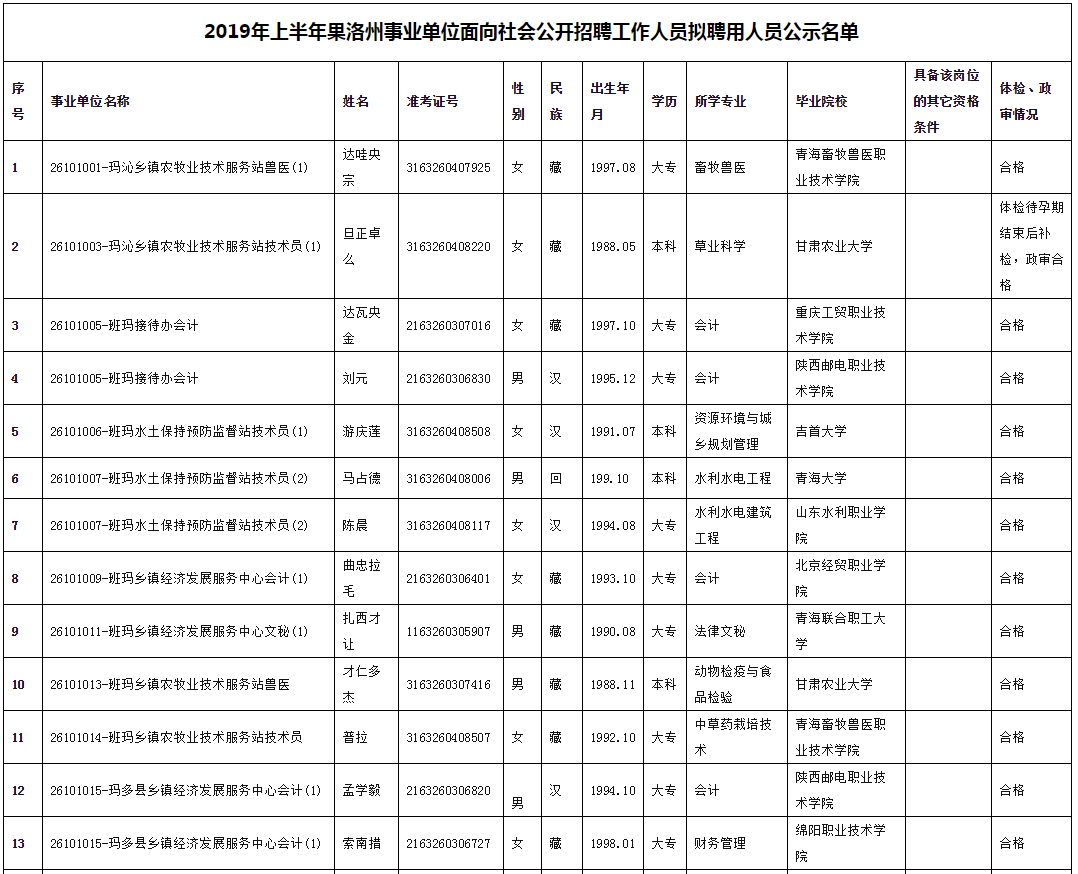 海南州公安机关2019年面向社会公开考录人民警察政审考察结果合格人员名单