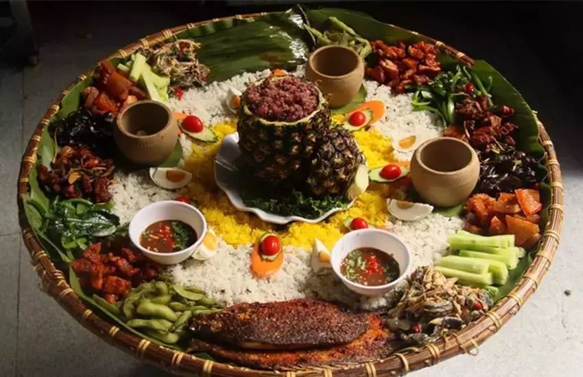 比如以竹子芭蕉叶等作为盛具的热带雨林美食