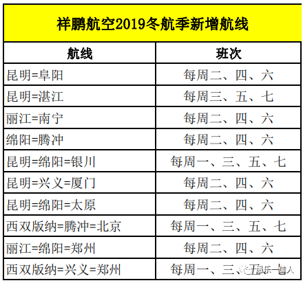 将开通丽江=曼谷、昆明=西双版纳=大理、腾冲=绵阳、西双版纳=腾冲=北京、西双版纳=兴义=郑州等多条国际国内新航线;
