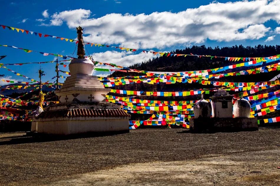 站在这片土地上,我们面对成群的牛羊,悠扬的牧歌,伴着朝钟暮鼓,古刹巍峨,宝相庄严,梵天香海,名山神境,一起挂上虔诚的经幡, 把我们带到神话般的世界。