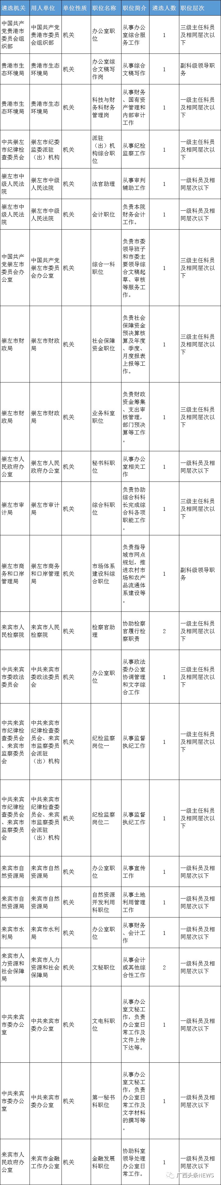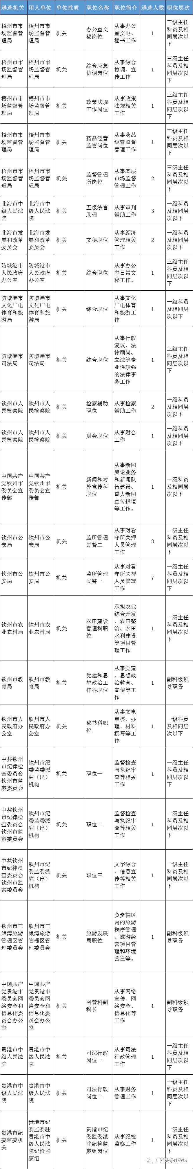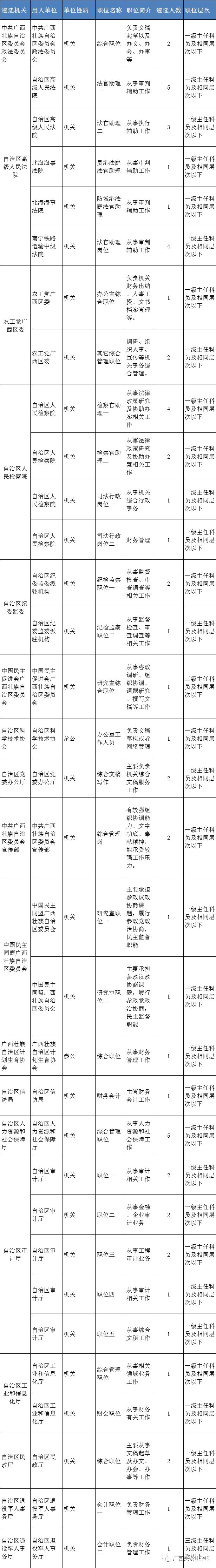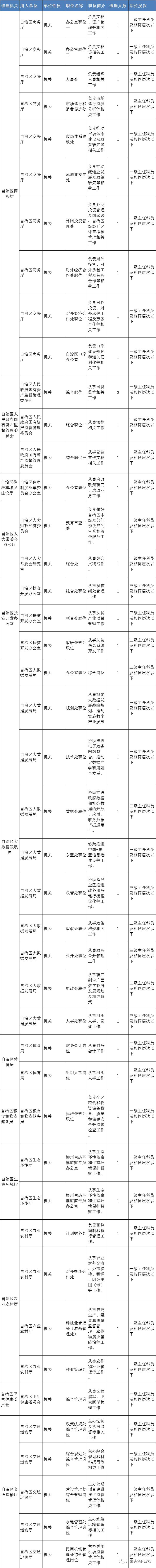 自治区直属机关的职位面向全区的市、县(市、区)、乡镇(街道)机关(参照公务员法管理单位),以及中央和自治区设在设区市以下的垂直管理单位、派出机构进行遴选。