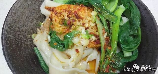最近我通过询问周边会做陕西面食的朋友,也学习起来了裤带面,第一次不是很成功,自己悄悄静静的吃了,吸取经验,总结三点,第二次完全就上手了。自从学会裤带面,我家又又姑娘连着喊着吃了三天,她可是一贯以米饭为喜好的。裤带面关键在和面、饧面和摔打扯面的功夫上,一碗面好不好吃,就要看你面条是不是筋道。裤带面的家常做法食材:普通面粉、青菜、(豆芽)、辣子面、小葱、蒜、食醋、生抽和盐。做法:1、准备普通面粉加入一小勺盐,分次倒入凉水,用筷子搅成面絮,没有干面粉,用手揉成面团,饧面20分钟,饧好后,再多揉一会揉光。
