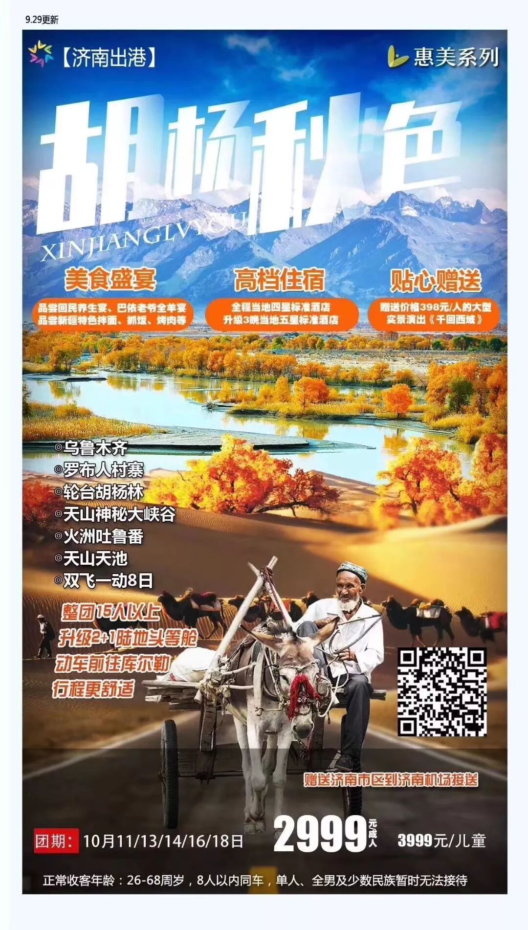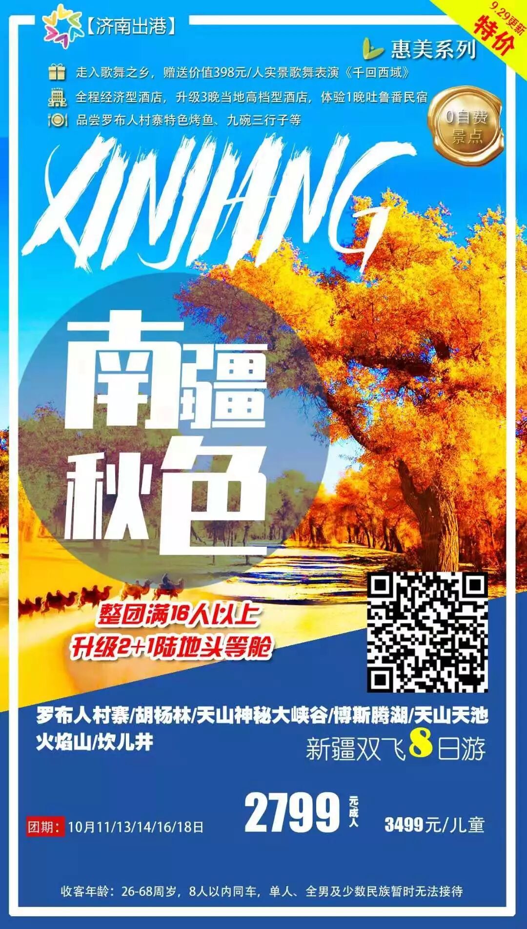 济南红叶谷一日游118元/人 1.2米以下69元人