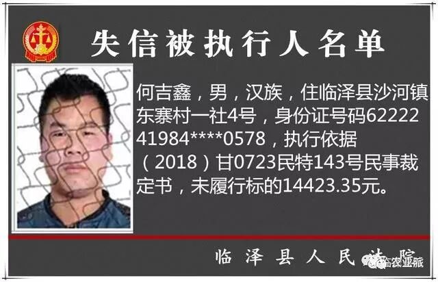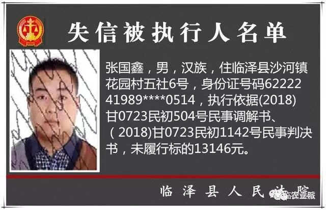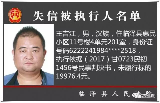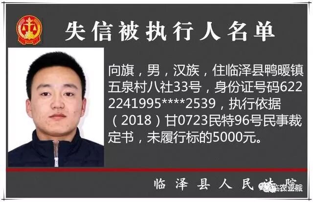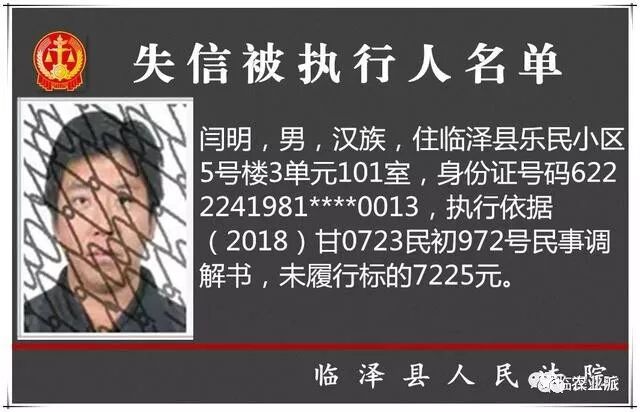 甘肃32名“老赖”被曝光!95年小伙欠5000元