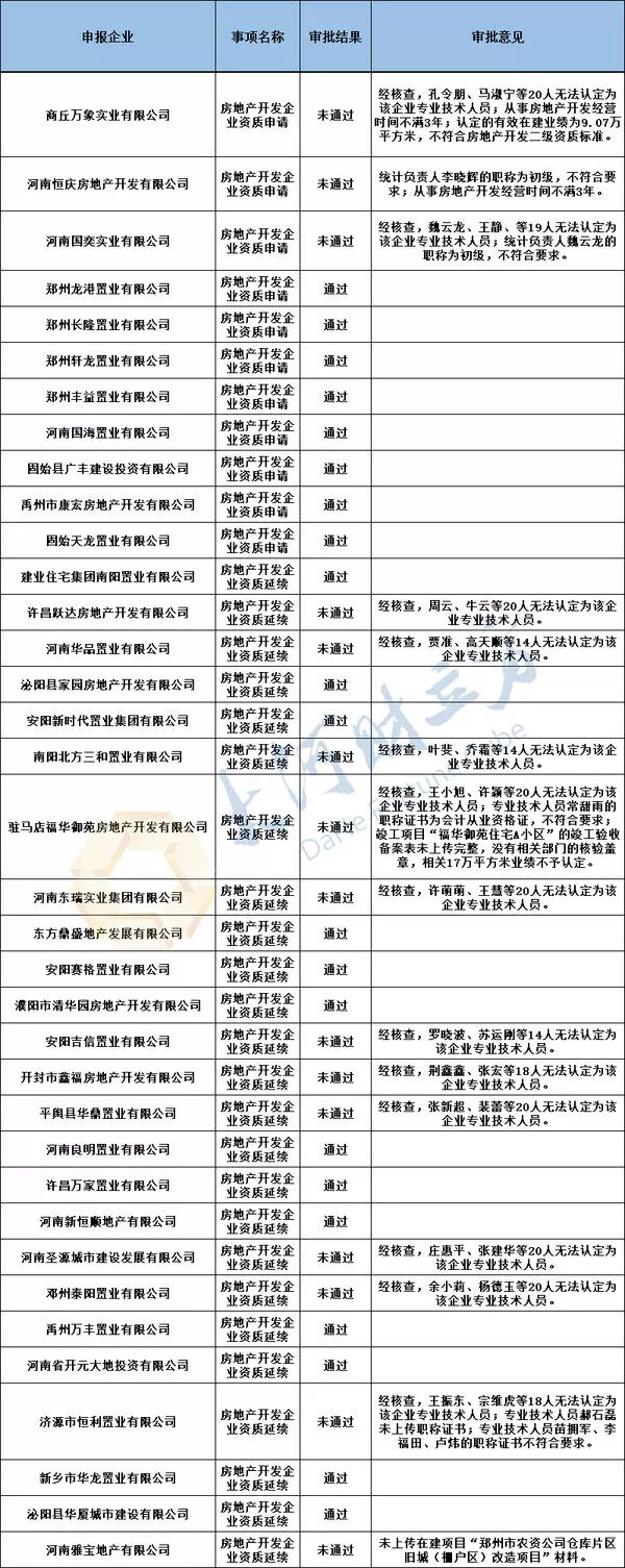河南36家房企资质审查意见公示,商丘有开发商未通过审批