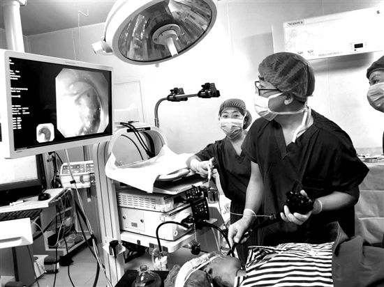 首例黏膜下肿瘤挖除术在市人民医院成功实施,图为手术现场。图片来源:拉萨晚报