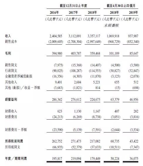 根据招股书显示,2016年至2018年,该公司的收入(人民币)分别为24亿、31亿和33亿,虽然收入略有增长,但毛利率却在下降,从原来的16%下降至约10%,对应的利润1.9亿、2.2亿和1.8亿,且2019年前4月同比2018年的收入和利润均下跌。按招股价中位数计算,市值为4.2亿(低于5亿,但又不是创业板股),市盈率7.53,估值略低。