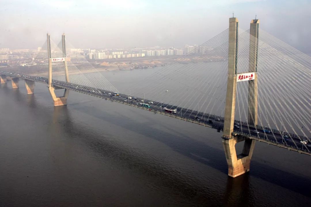 武汉长江二桥也称为武汉长江公路桥,是长江上第一座特大型预应力混凝土斜拉桥,位于武汉长江大桥下游6.8公里处,大桥北起汉口黄浦路三层立交桥,跨越长江至武昌徐东路。1995年6月通车。