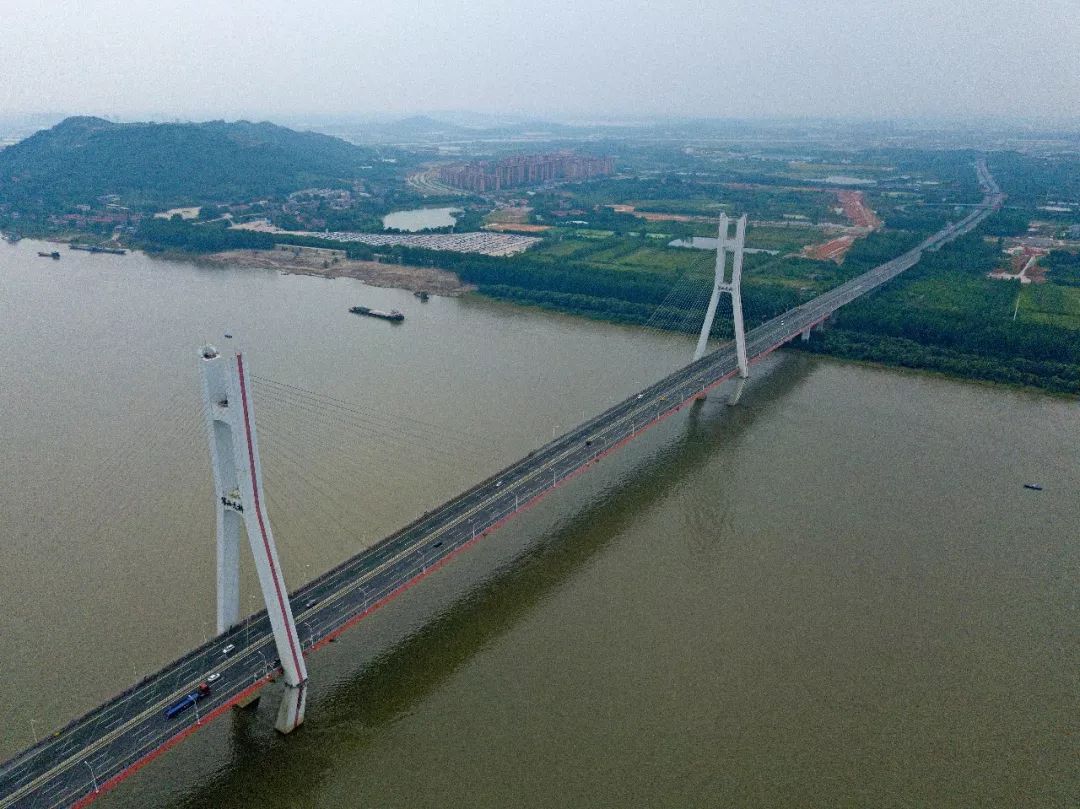 武汉军山长江大桥是武汉第四座长江大桥,是特大型公路斜拉桥,是京珠、沪蓉两条国道主干线跨越长江的共用特大桥梁。2001年12月15日建成通车。