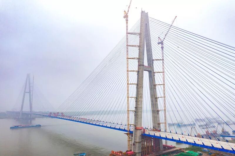 目前在建的青山长江大桥是武汉市第11座长江大桥,位于天兴洲长江大桥下游约7.5公里处。线路总长度为7.5公里,其中跨江主桥长4.4公里,采用双向8车道高速公路建设标准,桥面宽48米。今年9月9日,主体工程完工。