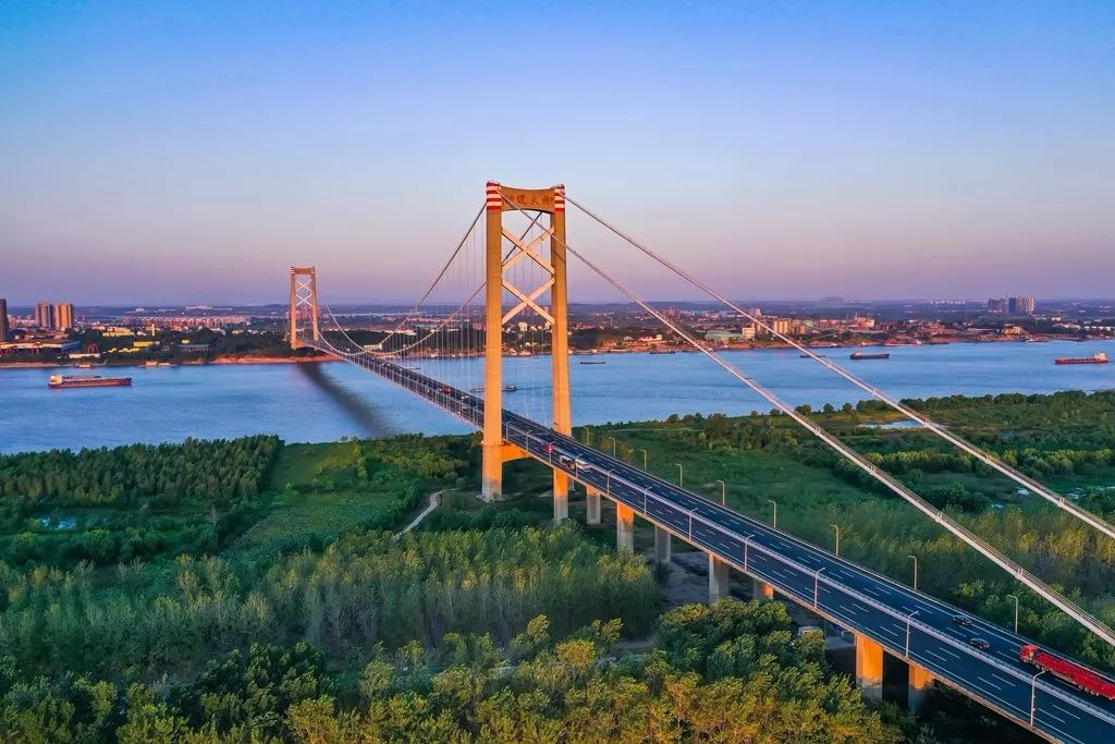 武汉白沙洲长江大桥是长江武汉段的第三座长江公路大桥,也被称为武汉长江三桥,最大跨度为618米,为世界第三大桥。2000年9月8日正式通车。