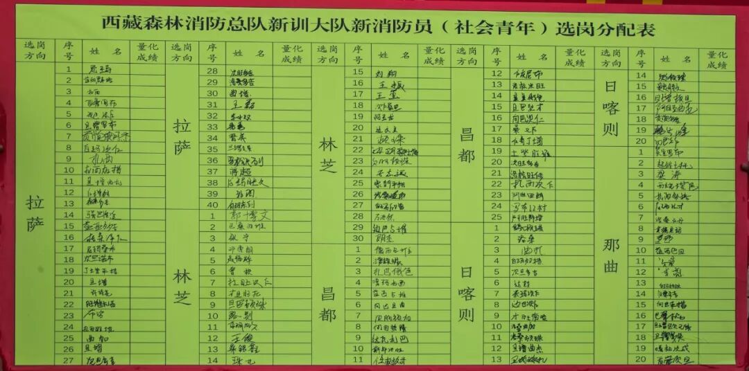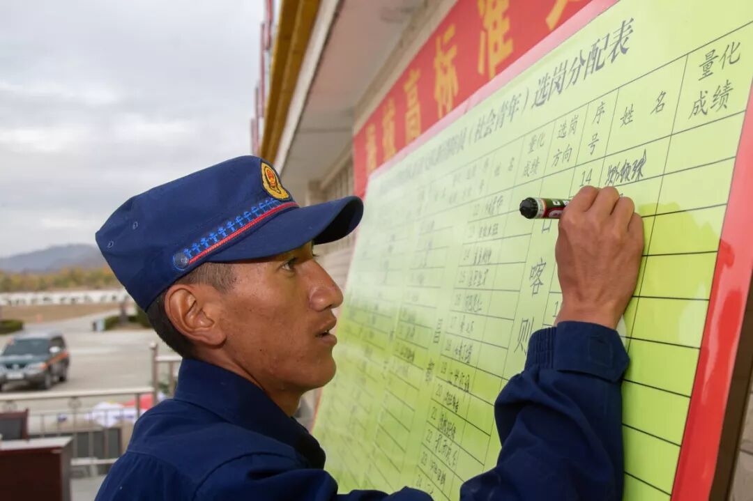 10月23日下午,西藏森林消防总队新训大队召开公开选岗大会,135名新消防员根据自己的量化成绩依次公开选岗。
