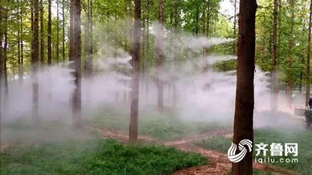 23日早晨,济南泉城公园内,一片茂密的树林在缭绕的云雾中,如梦如幻,如诗如画,让晨练的市民纷纷拿出手机进行拍摄。“之所以安装这个设备,主要目的并非是有意为了造景,主要是为了给水杉增加湿度,调节环境。”园方负责人回应。