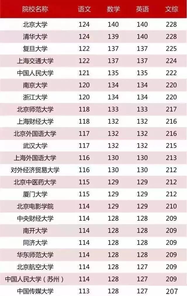 从以上数据分析得知:文科生要考上清北,数学和英语肯定是要接近满分的,文综肯定要在230分左右。要知道,以上都是按照最低分数统计的!实际上在有些省市,清北的录取分数要远高于这些分数!