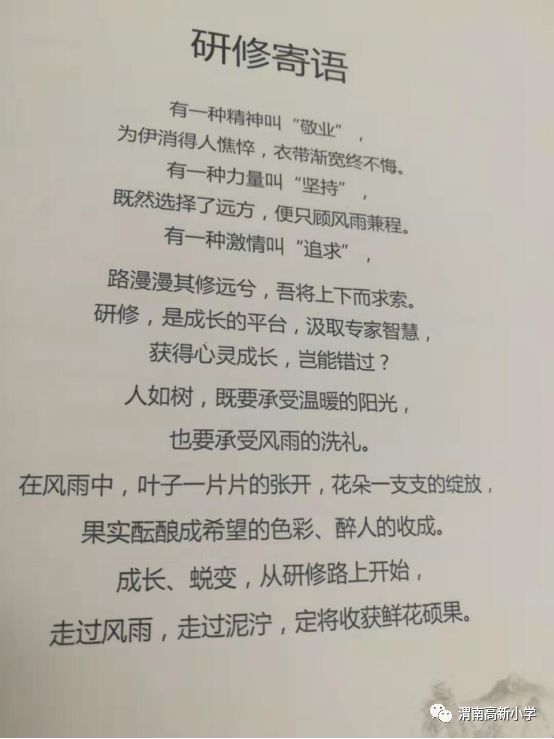 路漫漫兮其修远兮,研修,是成长的平台,汲取专家智慧,获得心灵成长,岂能错过?既然选择了远方,便只顾风雨兼程。人的成长蜕变,总是从学习路上开始,走过风雨走过泥泞,定将收获鲜花硕果。让我们一道努力,共同为家乡的教师队伍建设贡献我们的一份力量。