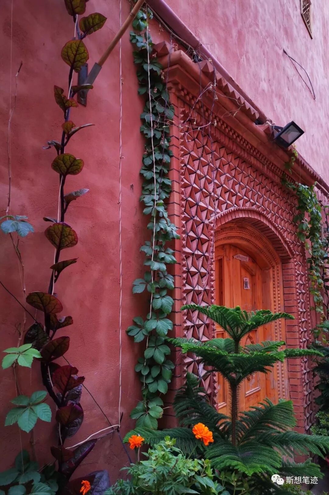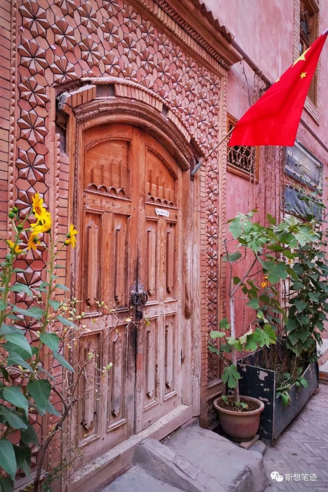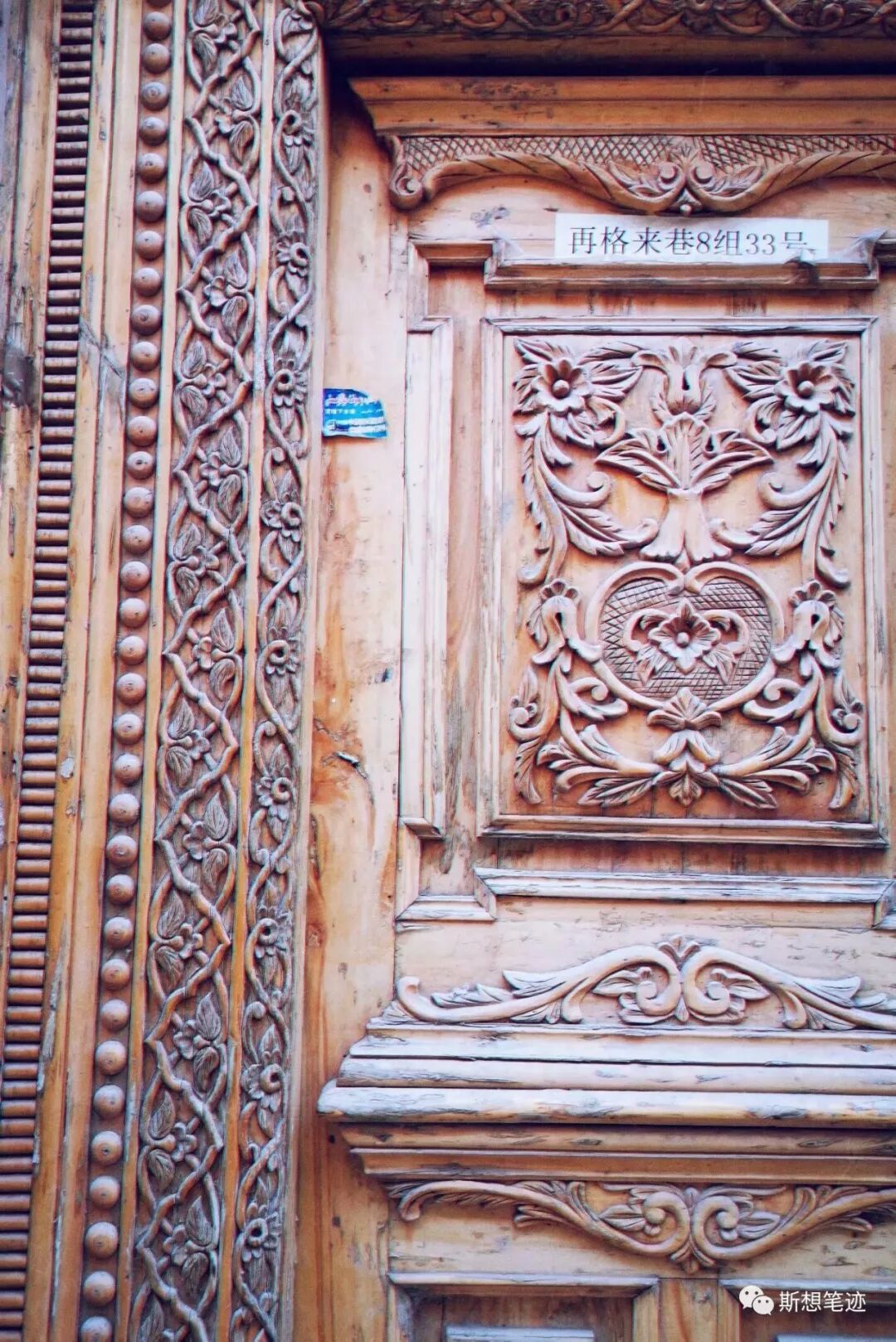 每个庭院都有两扇画着艳丽图案的木门,门也有门的暗语——半开半关代表男主人在家,男女客人都可以进;两扇门从里面关着,代表男主人不在,男客人不能进;两扇门都敞开着,就代表着随时可以接待所有客人。