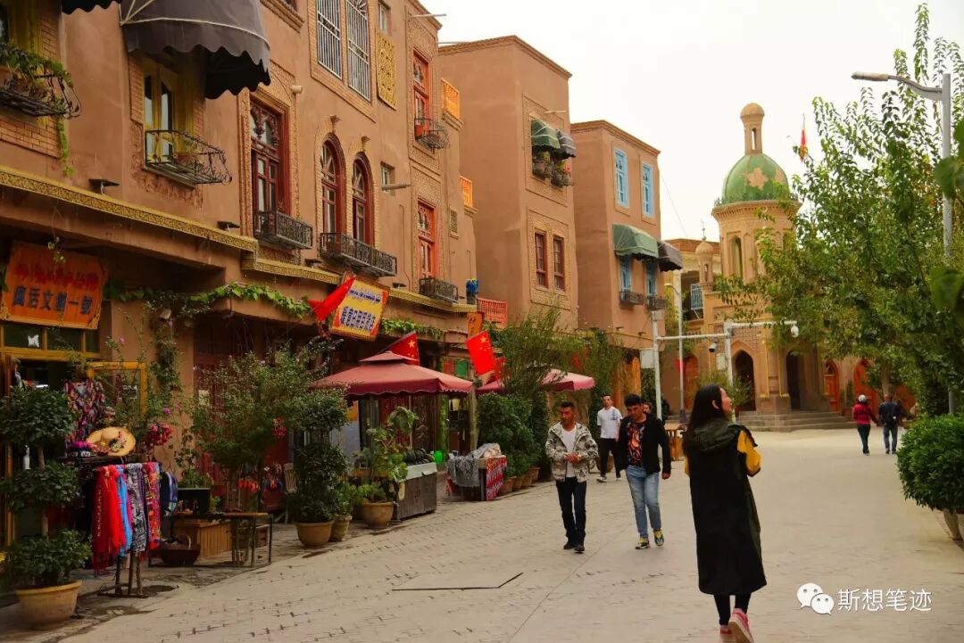 古城是维吾尔族聚居的地方,建筑很有西域特色,整体是古铜色调。街道不宽,但古朴、干净、整洁。