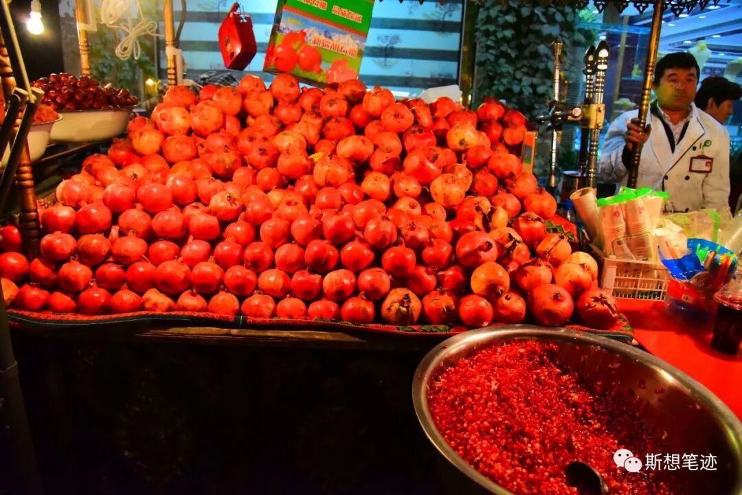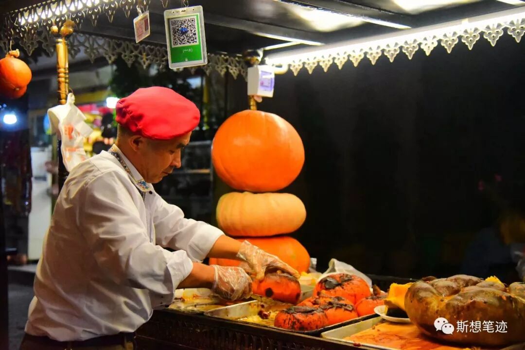 我最喜欢的就是鲜榨的石榴汁,一大杯一大杯喝着过瘾极了。其次就是烤南瓜,巴掌大的小南瓜,热乎乎一揭盖儿,肚子里填满了蜜枣、甜杏脯、无花果和各种坚果。还有很多叫不出名字来的美食,如果再不到这里,或许一辈子就只能吃到一次了吧。