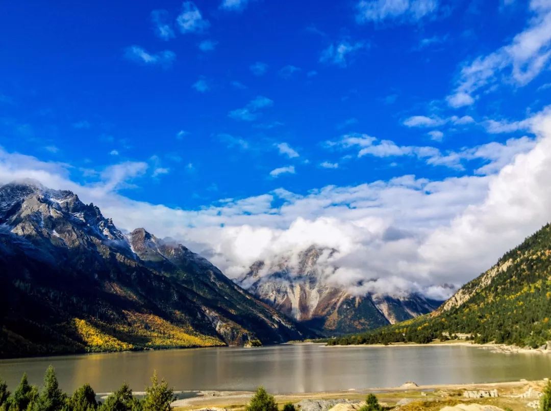 然乌湖的静和蓝是远近闻名的,湖中极少看到枯枝杂物,湖周景色各不相同。