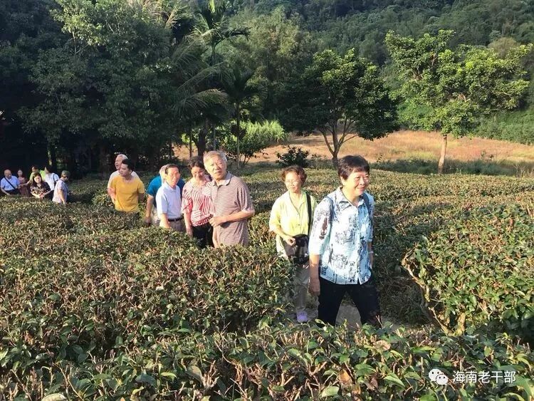 随后,老干部们来到五指山市水满乡,参观椰仙生态观光茶园,兴致勃勃地品尝水满茶,实地考察五指山的茶产业。近20年来,五指山茶产业始终坚持生态种植,从最初的粗放型种植产业,逐步走向规模化、品牌化,近些年涌现的多个知名品牌,逐渐成为五指山农业、旅游、文化的一张名片。老干部们置身于幽美的环境,呼吸着新鲜的空气,心情显得格外舒畅与愉快,他们亲身感受科学技术与传统农业相结合给农民生产、生活带来的巨大变化,称赞“好山、好水、育好茶”,“一片茶叶,带富一方”,表示将一如既往的支持和关注我省经济建设和各项社会事业发展,深刻总结这次参观考察活动取得的成果,继续为海口市经济社会发展建言献策,为海南自贸区(港)建设贡献智慧和力量。