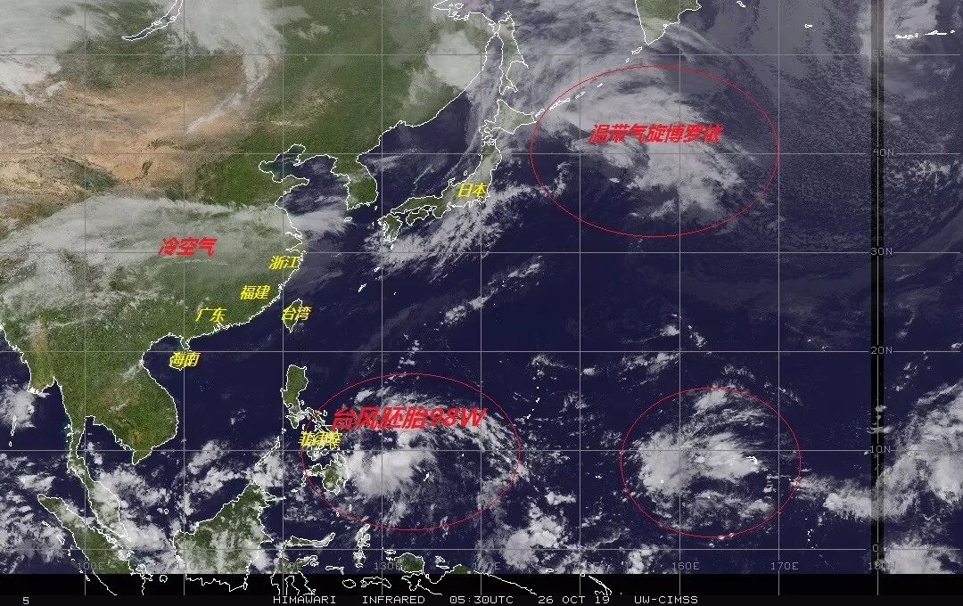 今年第21号台风“博罗依”已于昨天晚上在日本以东洋面变性为温带气旋,中央气象台晚上8点钟对其停止编号。但是西北太平洋上的台风季还没有结束,昨天位于菲律宾以东海域上生成了台风胚胎98W,它就是前天文章所提到预测未来会进入我国南海的台风胚胎。