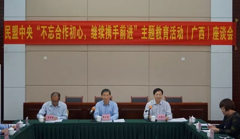 刘慕仁在座谈会上介绍,民盟广西区委高度重视“不忘合作初心,继续携手前进”主题教育活动,专门制定工作方案,成立领导机构和工作机构,以习近平新时代中国特色社会主义思想为指导,以贯彻中共中央关于加强中国特色社会主义参政党建设意见为主线,以为“建设壮美广西 共圆复兴梦想”做贡献为载体,围绕做中国共产党的好参谋、好帮手、好同事的目标,扎实推进主题教育活动深入开展。