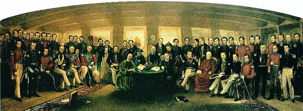 1842年,清朝在与英国的第一次鸦片战争中战败,清政府代表在南京与英国签署《南京条约》;