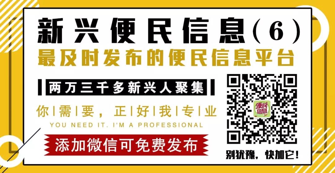 新兴人关注关注我哟定期推送新兴本土文化,同城活动,吃喝玩乐,资讯八卦,商家优惠等诸多优质内容,最接地气、重服务的本地微信平台!关注我们妥妥没错!(广告合作:18607661013)