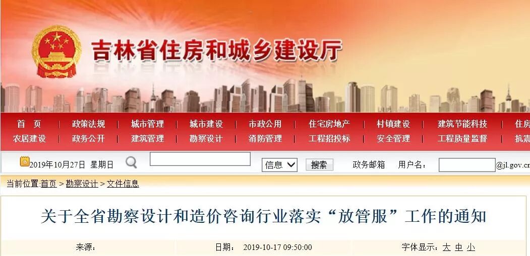 近日吉林省住房和城乡建设厅发布《关于全省勘察设计和造价咨询行业落实“放管服”工作的通知》,通知明确提出:
