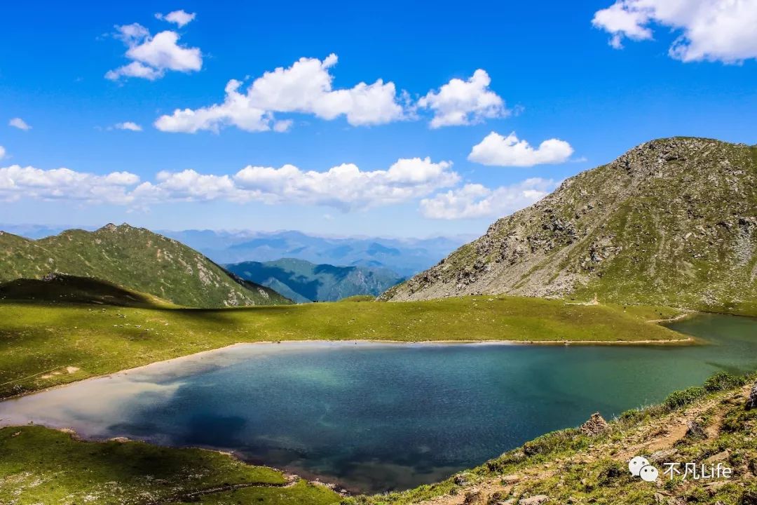 浪士当景区是北山国家森林公园的中心景区,圣母天池,也叫胡勒天池,当地藏民喜欢称之为圣母天池,是浪士当景区的王牌景点,有大小两个天池,大天池海拔3690米,面积70亩,小天池海拔3780米,面积10亩,池水清澈见底,池面波光粼粼,倒映蓝天白云,雪山草地,宛如一块巨大的翡翠镶嵌在高山之上。